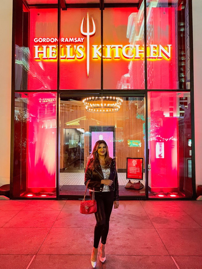 The Room was perfect and lived up to our expectations. Once you are settled in, the real spirit of Las Vegas takes off as the sun sets!! All the Casino’s light up and the strip looks like one beautiful un-ending show of lights!! Thousands of tourists flock the boulevard , hopping from one casino to another!! The Bellagio Casino Water Fountain Show takes center stage!! It runs daily every 30s min before 7 PM thereafter ever 15 mins. The songs are usually mixed and also based on the season!! It is a spectacular show and I ended up seeing it at lest 3 times. For Dinner, we hopped into the “Hells Kitchen”!! Creation of the Famous chef and TV Celebrity Gordon Ramsey!! It is located in Caesars Palace. The Food is amazing!! What caught our attention was the cocktails especially the Smoke on the Boulevard and the delicious dessert Sticky Toffee Pudding!!