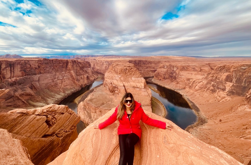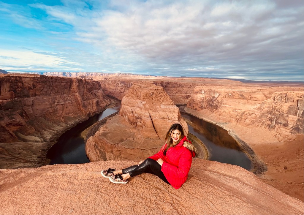 In the morning we headed to Horse Shoe Bend. It’s a short 5 mile drive from the hotel and is located off US Highway 89. There is a nominal Charge of $10 per vehicle for parking. Once there, get your jackets out as it is a 10-15 mins walk along open trail from the Parking. While walking, the views of the desert in the never ending horizon are mesmerizing!! Before you know it, the Horse Bend becomes slightly visible when you are around 250 meters away.
